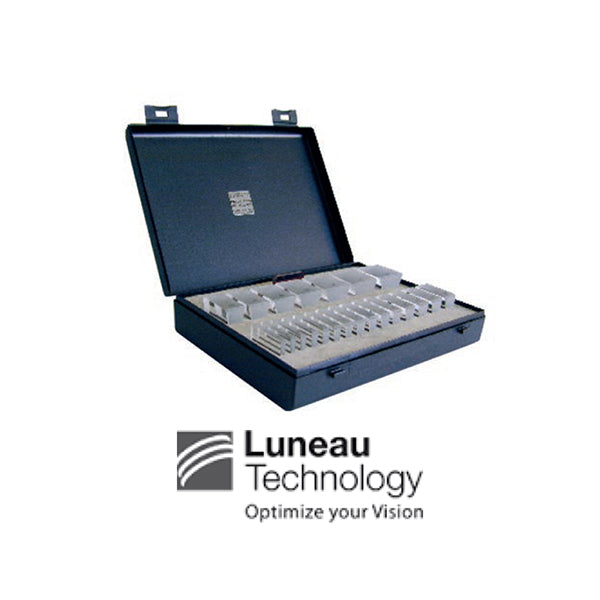 Loose 22 Prism Set, 37 mm square, 16 piece Prisms. The 22 pc sets include 0.5, 1, 2, 3, 4, 5, 6, 7, 8, 9, 10, 12, 14, 16, 18, 20, 25, 30, 35, 40, 45, 50 diopters plus Red. Plastic Box with foam insert.